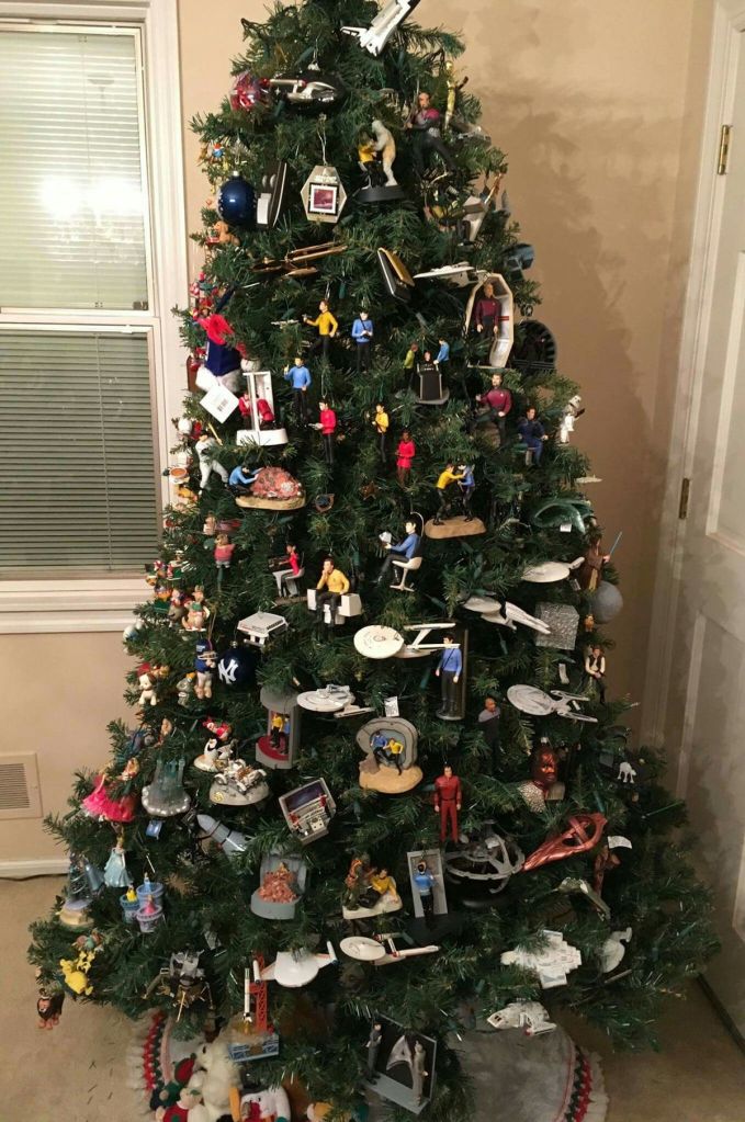 Our sci-fi Christmas tree. The decorations are mostly from Star Wars and Star Trek, but we have a couple from Battlestar Galactica, Guardians of the Galaxy and Firefly. –Barry Fackler on Facebook
