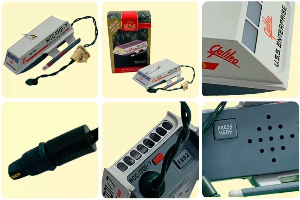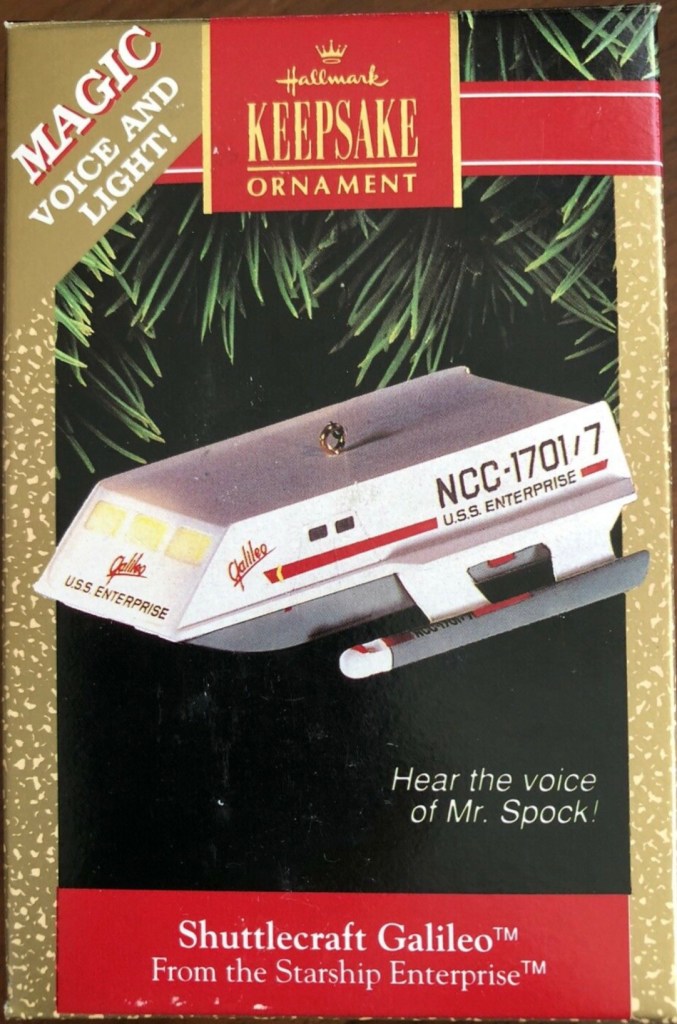 The follow up to the 1991 Starship Enterprise ornament, the Shuttlecraft Galileo Hallmark ornament was released in 1992, and was also a huge hit with Star Trek collectors. Not only did the cockpit of the NCC-1701/7 light up, but it also features a special holiday message from the First Officer of the USS Enterprise, Mr. Spock.