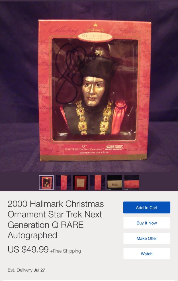 This a rare piece in that this was autographed by the actor John de Lancie who portrayed Q.