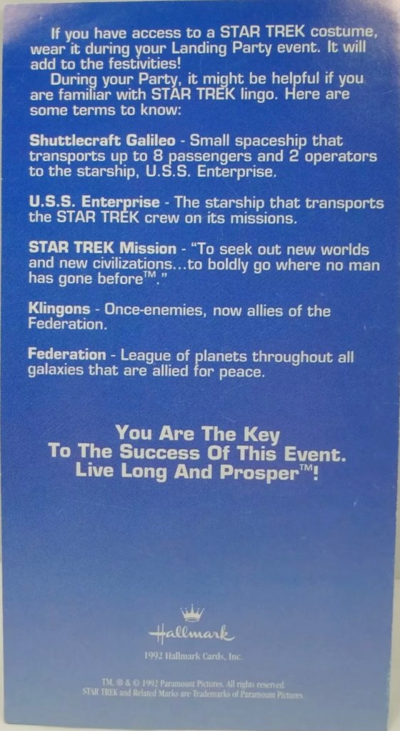If you have access to a STAR TREK costume, wear it during your Landing Party event. It will add to the festivities!