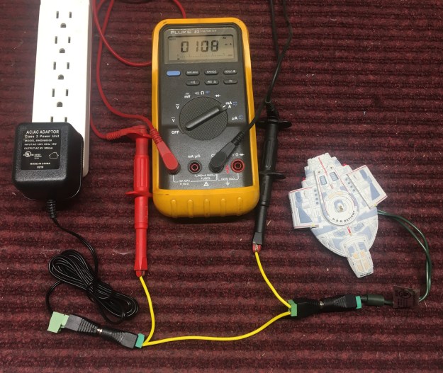 Thank you to the author of this post – although a prior commenter is correct, I could’ve used an incandescent string and popped out a few bulbs, this workaround allowed me to keep my programmable LEDs on the tree without the mixing and matching, and still brings my legacy ornaments back to life……all at about a third of the cost of the legacy power cord on eBay. One question for anyone that can answer….I did not use a multimeter to measure the mA draw of each ornament, I plugged my 6v ac power supply (exact one mentioned in the post) into a power meter plugged into an outlet. For four ornaments (Romulan Bird of Prey, Klingon Warbird, Enterprise D, and the Jetsons bubble ornament) connected and powered simultaneously through a daisy chain, it was measuring only 40 mA total draw. Is this method of measurement somehow inaccurate or not effective? I was expecting much higher especially for the Klingon Warbird, and the Jetsons ornament also has flashing and solid lights. It’s meaningful to me because…..although I am experiencing no problems with these four….. I want to add more ornaments and would like to know how much power I have left before I need another power supply. Thanks again!