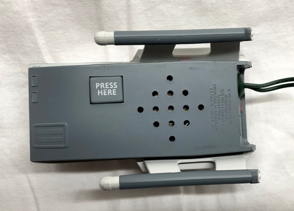 To hear Spock’s message, press the button labeled “Press Here” on the bottom of the shuttlecraft.
