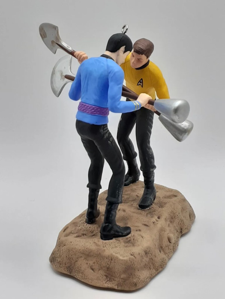 Kill a friend or be killed? This is the dilemma Captain Kirk and Mr. Spock encounter in the popular 1967 Star Trek original series episode “Amok Time.” Compelled by the Vulcan time of mating, Pon farr, Spock returns home to be married, only to find his intended has other plans. Unexpectedly, she chooses Kirk as her champion, pitting the friends in a traditional Vulcan battle…to the death! With a little medical trickery from Dr. McCoy, Spock appears to win the life-or-death struggle. Later, upon his return to the Enterprise, Spock happily discovers that Kirk is alive and well.
