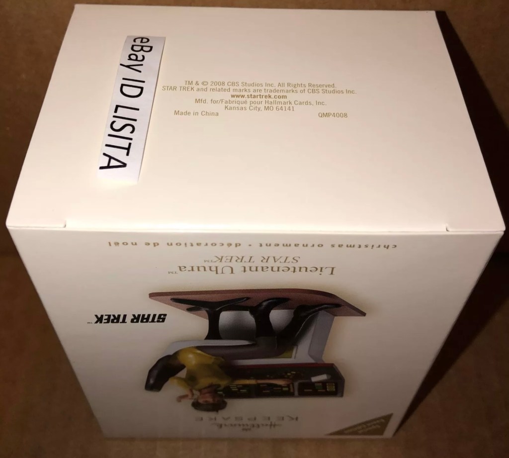 This auction is for the Hallmark 2009 Star Trek Lieutenant Uhura in the GOLD Uniform ornament from the San Diego Comic-Con. Only 450 of these were made! It is Mint in Box, and has never been displayed. The box has one small flaw on the rear upper center of the box (see pictures). Other than that the box is Mint with virtually no shelf wear, as I’ve stored it in the original plastic bag since its purchase. As it was never intended for sale in stores, there is no UPC.