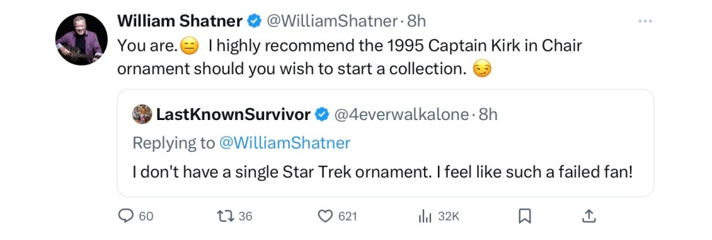 1 thought on “William Shatner and Hallmark Ornaments