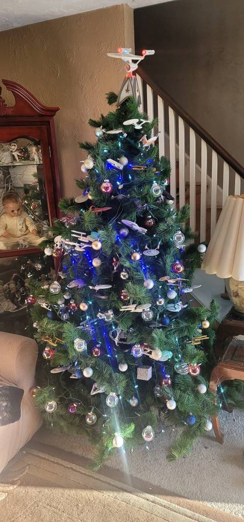 Back in the 90s my family started a tradition of giving me a Star Trek ornament every year. This year no one want to trim the tree and didn’t care what went on it, but me. So ever Starship ornament since the 90 is on this tree. I don’t watch Star Trek as much as I use to but I still collect all the ships. But here is the tree done. –Christopher Faunce II, Facebook