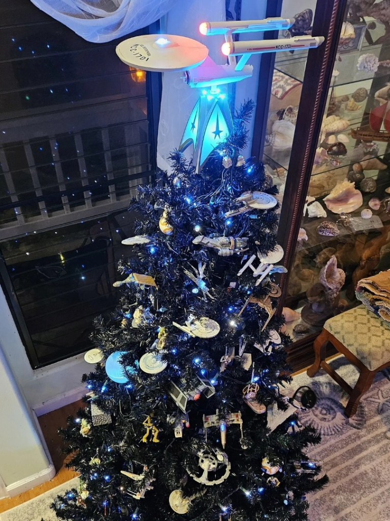 Hallmark Star Trek Display #771 Leave a reply Our sci-fi Christmas tree. The decorations are mostly from Star Wars and Star Trek, but we have a couple from Battlestar Galactica, Guardians of the Galaxy and Firefly. –Barry Fackler on Facebook Share this:ShareTweet Share on Reddit (Opens in new window) Reddit Like Loading... Related