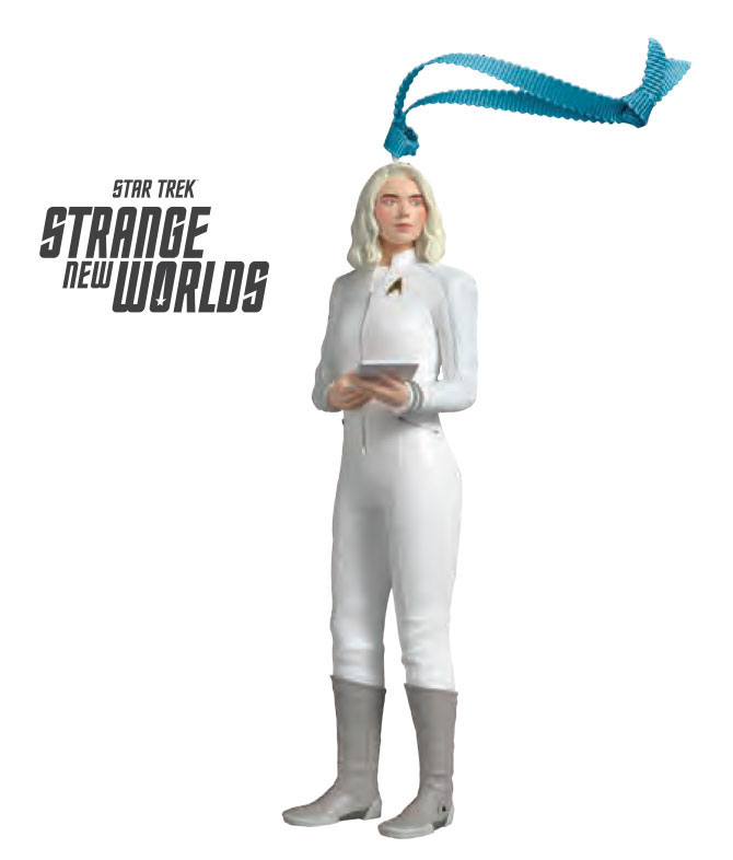 Majel Barrett’s Christine Chapel was never immortalized as an ornament, but Jess Bush’s Star Trek: Strange New Worlds version will debut in 2026. Women of Trek have seen strong representation in recent years from Hallmark, with releases including 2024 Beverly Crusher, 2025 Hologram Janeway, 2025 Guinan, 2025 Beckett Mariner, and 2025 Seven of Nine.