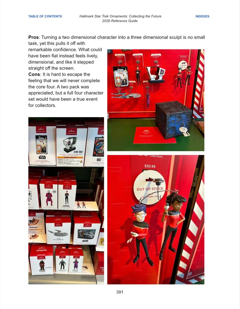 What began as a tool for keeping track of ornaments has become a detailed archive of the Hallmark Star Trek line. Now spanning over 475 pages, this edition offers a curated summary of HallmarkStarTrekOrnaments.com, highlighting the ornaments, memories, and moments that matter most to collectors. It is freely available online via Google Docs and can be downloaded for personal use, whether as a reference, a guide to values, or simply a way to explore the creativity, passion, and fan devotion that have shaped decades of Star Trek collecting.