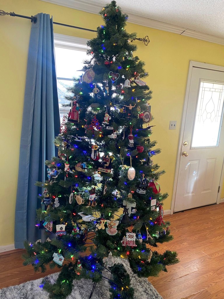 The Christmas tree is finally decorated. It has Star Trek, of course , nurses, cardinals and Santa. Some are handmade and others still have price tags. Some have names and dates in them. Some are old and some are new. Merry Christmas to everyone! –Ann Buie on X