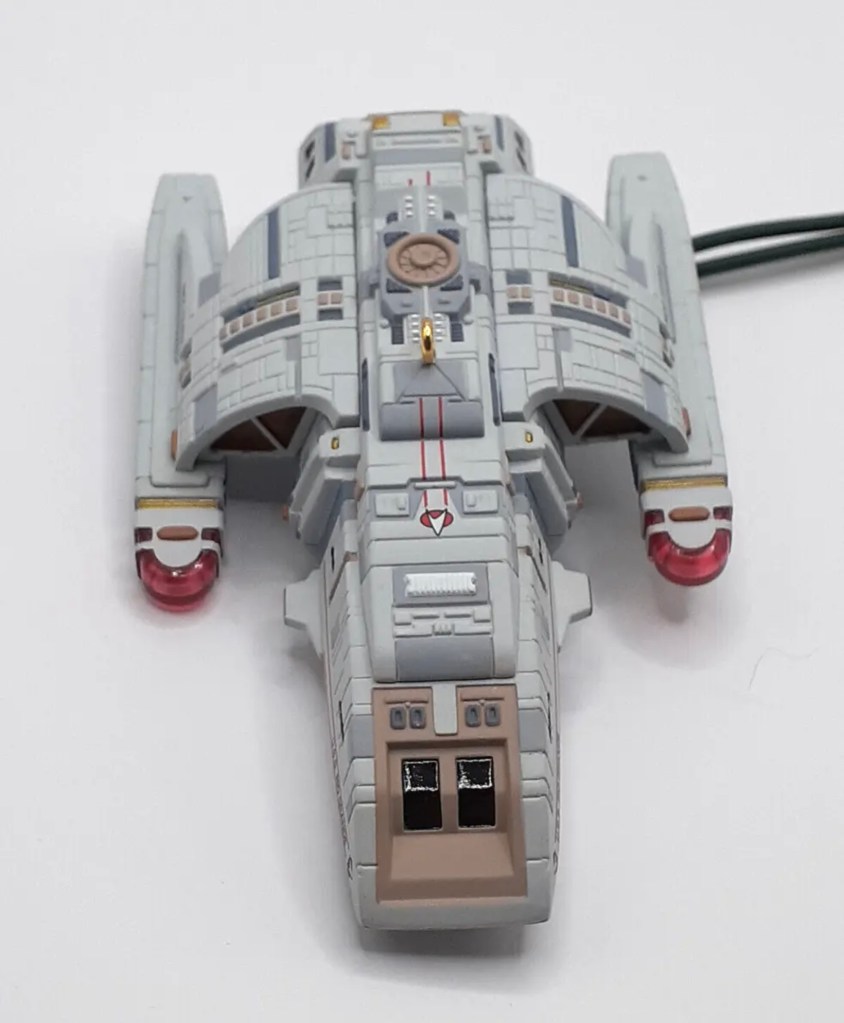 Pros: Exceptionally detailed with some of the best lighting in the entire Star Trek ornament line. When illuminated, the Runabout absolutely shines—easily one of the most striking ships to grace a holiday tree.