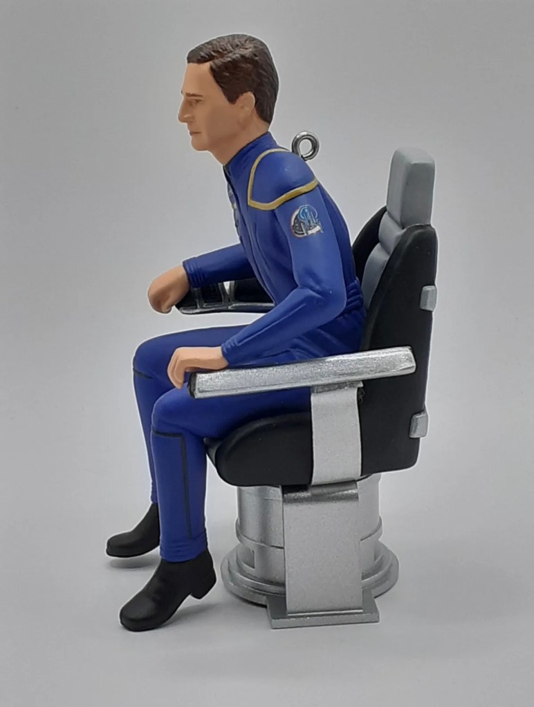 Pros: A captain seated in the command chair is always a winning pose, and this ornament continues that tradition well. The body language captures Archer’s leadership style—focused, grounded, and ready for whatever space throws at him.
