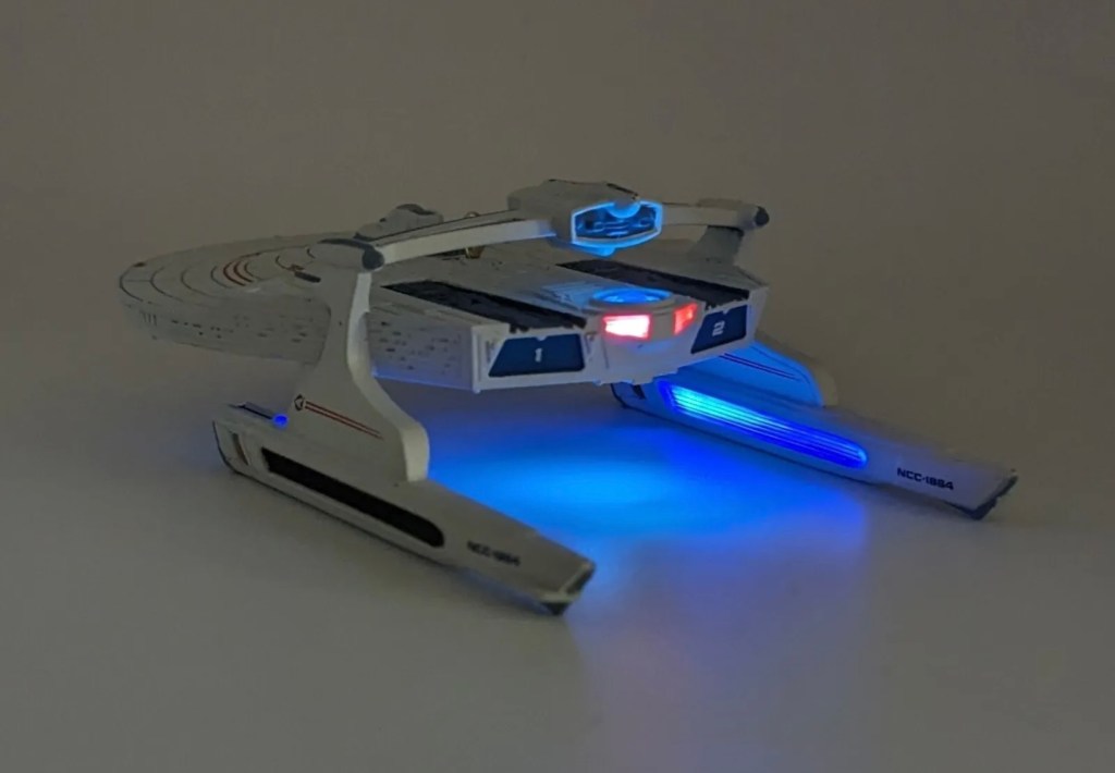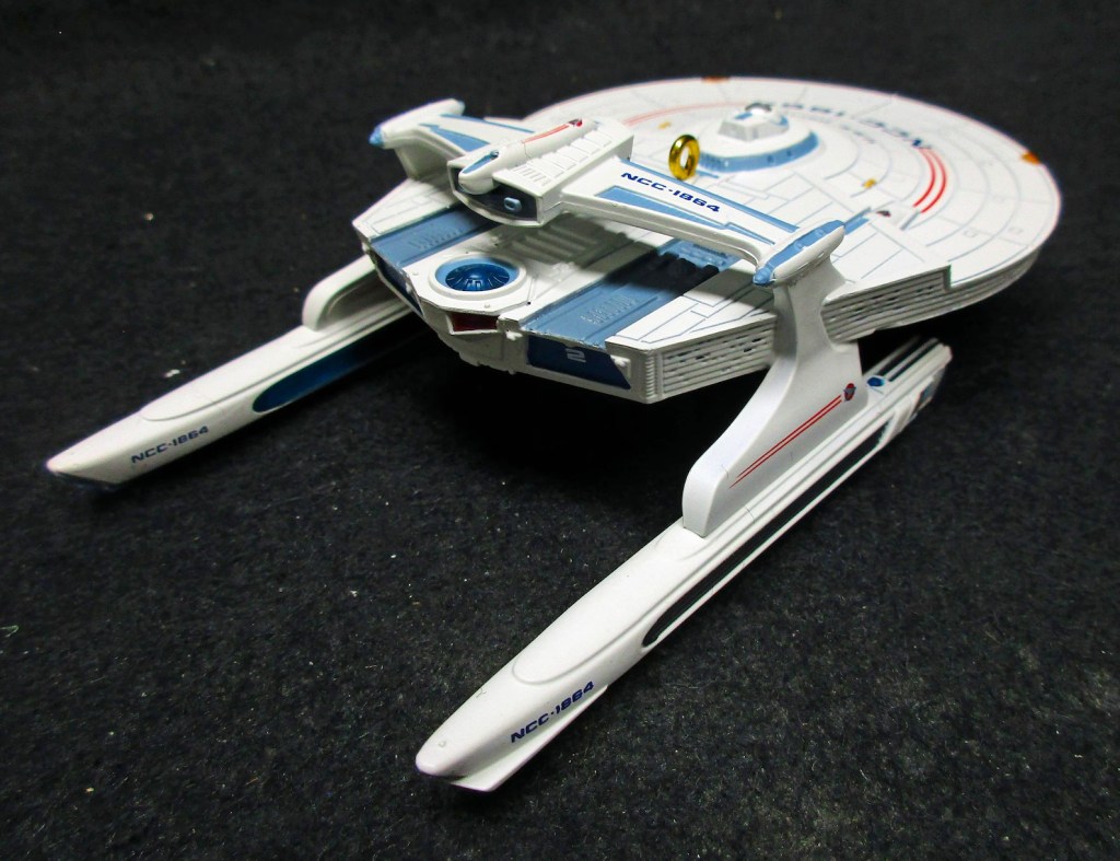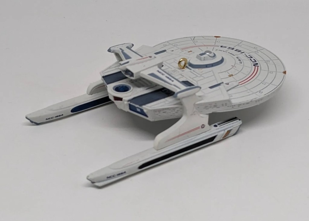Pros: Exceptional detailing on this beloved Wrath of Khan ship. Its unique silhouette offers a refreshing visual contrast to the many Enterprises on your tree.