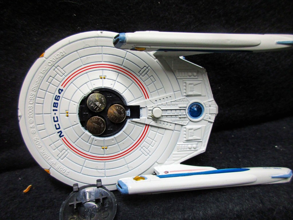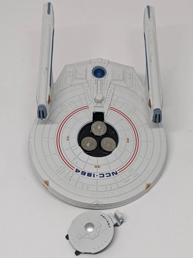 Press the button on the underside of the ornament to see the Reliant’s lights illuminate.