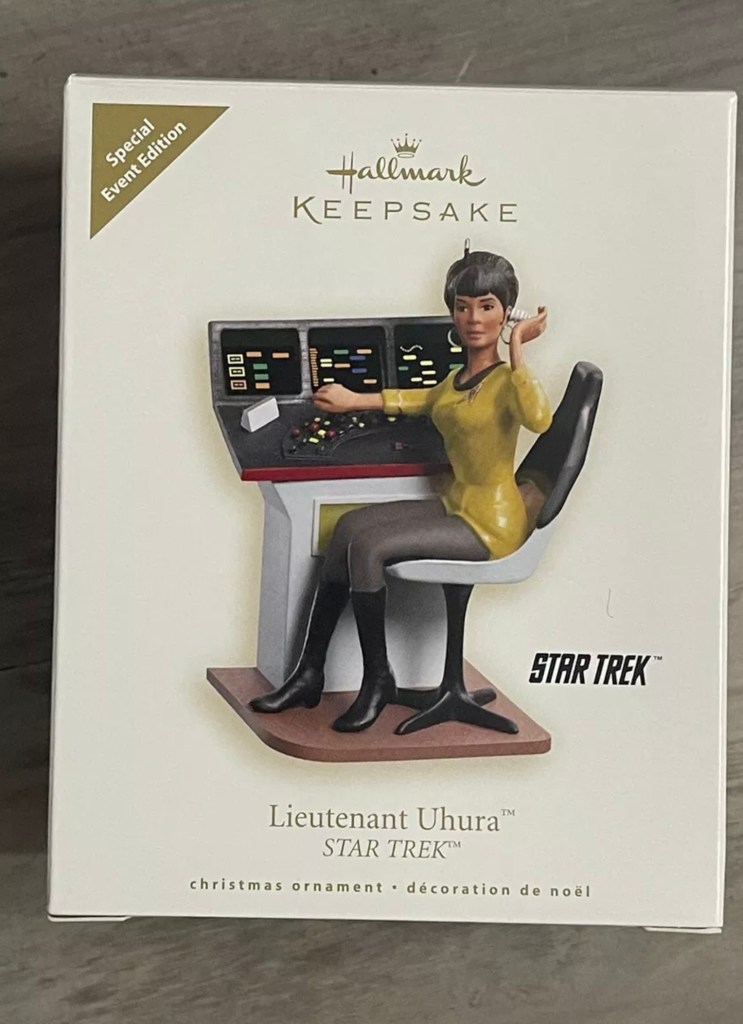 Uhura was the first Star Trek Event Exclusive ornament and was originally available at San Diego Comic-Con. Only two Uhura Gold ornaments have been available on eBay in the past twelve months with the last one being more than six months ago. Secondhand websites list the ornament for $1,799.99.
