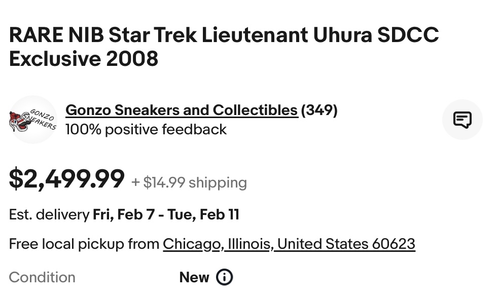Although more units were produced than the 2009 Uhura Gold, the quantity still pales in comparison to recent event exclusives that can number over 3,000. Ornament resell websites list this ornament as high as $3,999.99.