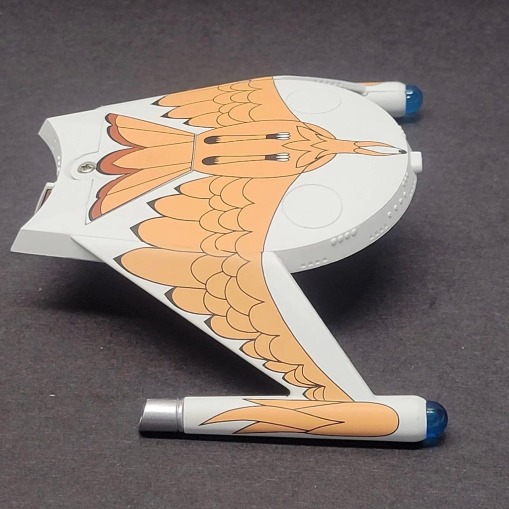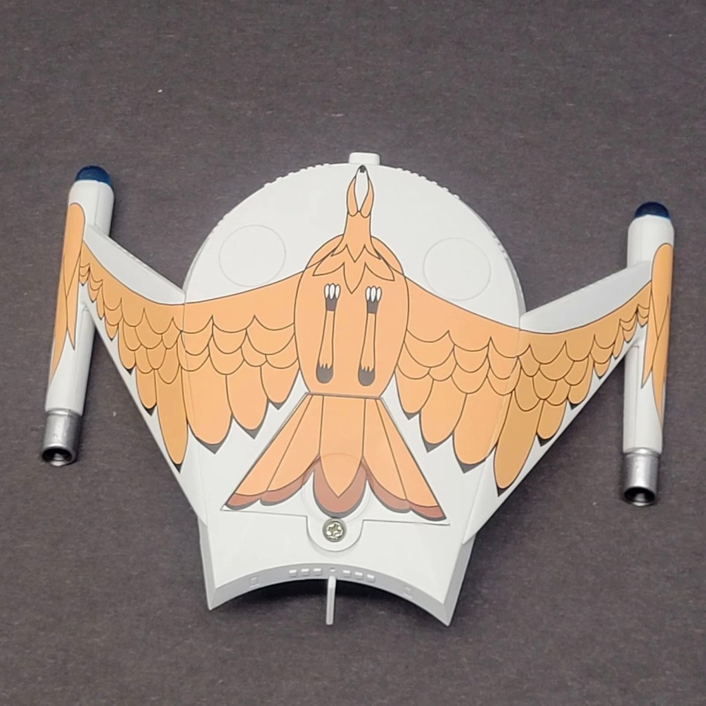 A space vessel boasting 23rd-century technology as stealthy and cunning as the aliens aboard it, the Romulan Bird-of-Prey is one of the most intimidating ships ever to face the U.S.S. Enterprise™ under the command of Captain James T. Kirk. Among its distinctive features are powerful energy plasma torpedoes, a cloaking device rendering it all but undetectable by Romulan enemies, and a hull decorated with a colorful bird from which the ship gets its name.