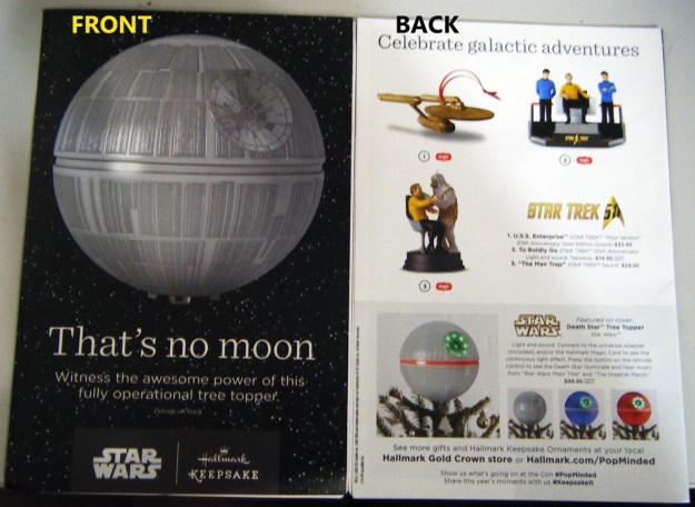 Hallmark gave away souvenir buttons back in September at Star Trek Mission New York. The buttons feature the 2016 50th Anniversary “Pilot” Enterprise with gold finish. You can still get the ornament in stores this month but good luck finding a button anywhere.