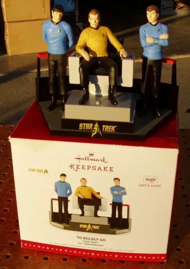 Press the button on the decoration to see the scene illuminate and hear dialogue from the original “STAR TREK” television series!