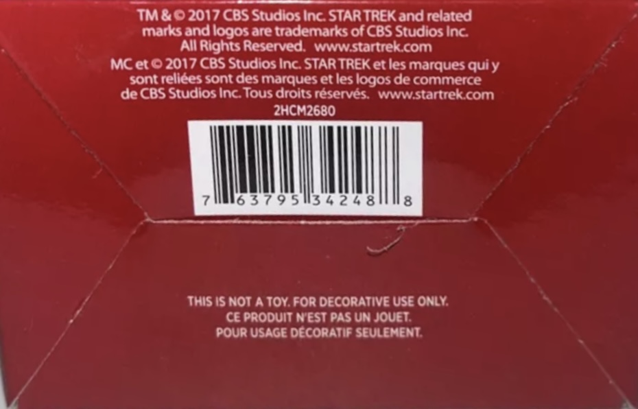 Below is a 2017 box variant for the Spock Quog ornament. The packaging is adorned with French text on the front of the box.