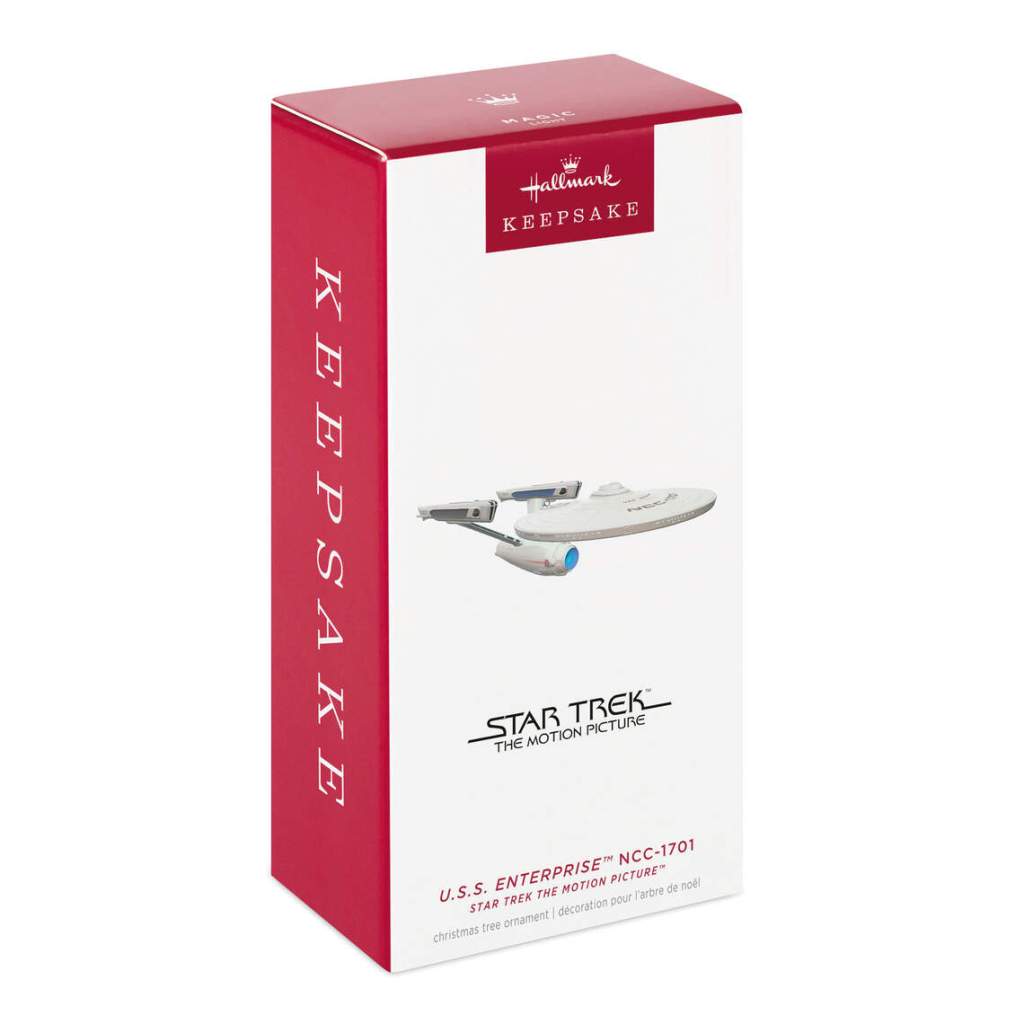 Carrying its crew on all-new voyages, the refit version of the U.S.S. Enterprise launched to face the cosmic entity known as V’Ger. Boasting updates to its warp nacelles and overall design, this Enterprise was introduced in the first Star Trek feature-length film in 1979, “Star Trek: The Motion Picture.” Delight a fan with this Christmas tree ornament of the iconic starship that lights up. Battery operated.