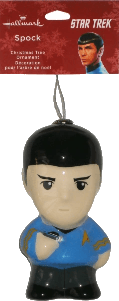 Mr. Spock brings a holiday wish to “Live long and prosper. ” Failing to add this stylized decoupage ornament of the resourceful Vulcan to your Christmas tree would be highly illogical. The ornament is ready to hang on your Christmas tree with a hanger attachment.