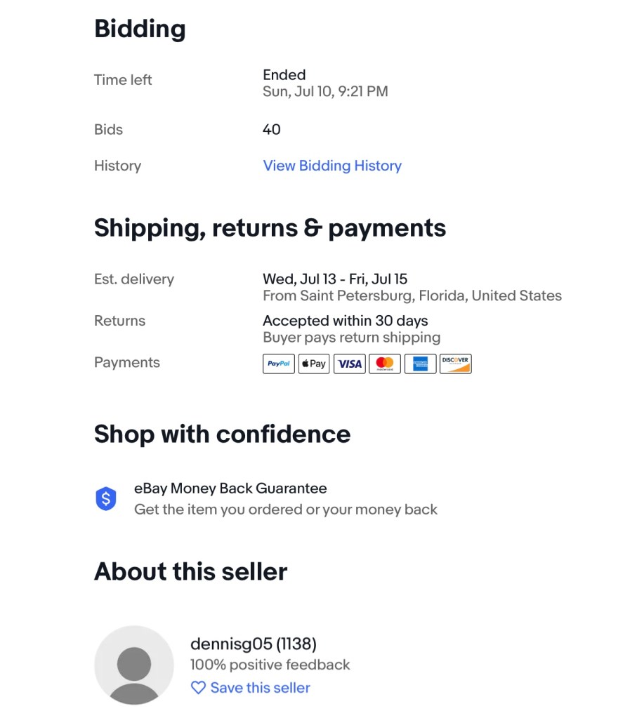 2022 eBay prices: $17 – $133
