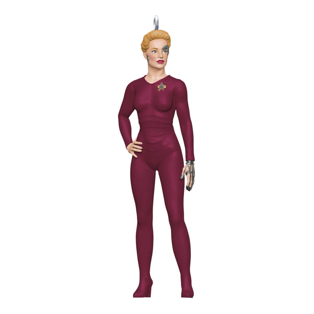 After arriving aboard the U.S.S. Voyager, Seven of Nine rediscovered her humanity following assimilation by the nefarious Borg. Celebrate the 30th anniversary of “Star Trek: Voyager” with this miniature Christmas tree ornament featuring the iconic character with her visible remaining implants.