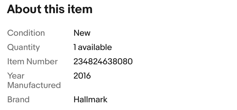 And this one is making my Spidey Sense tingle. Very high price, all feedback seems to be as a buyer rather than a seller, and all those photos but not one photo of the ornament itself? While I recognize that there are plenty of sellers on eBay for whom English is not a first language. That said, the description on this one also gives me pause.