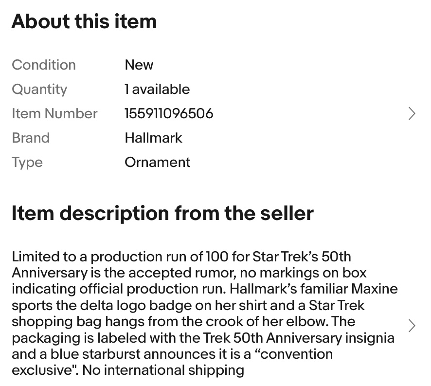 HallmarkStarTrekOrnaments.com is not affiliated with this auction.