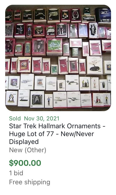 -1991 to 2008: ***COMPLETE set, every Star Trek ornament released by Hallmark