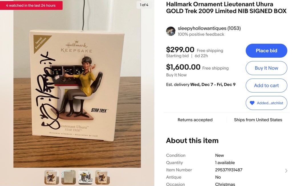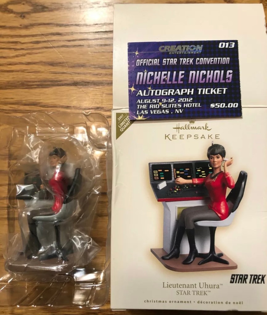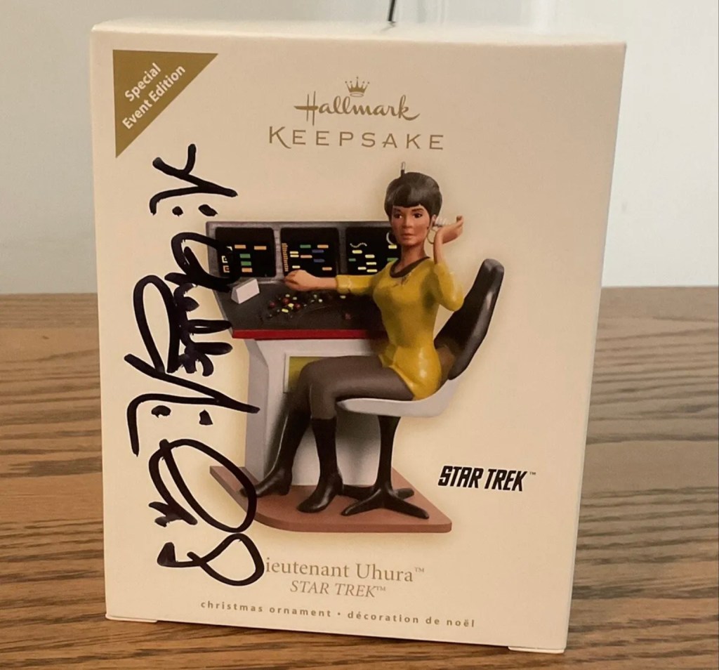 Lynn Norton seen at a 1996 Star Trek 30th anniversary convention in Huntsville, Alabama. These photos were posted with permission from banone77 who currently has four Norton-signed Star Trek ornaments listed on eBay. Be sure to check out these signed ornaments, linked below, while they are still available.