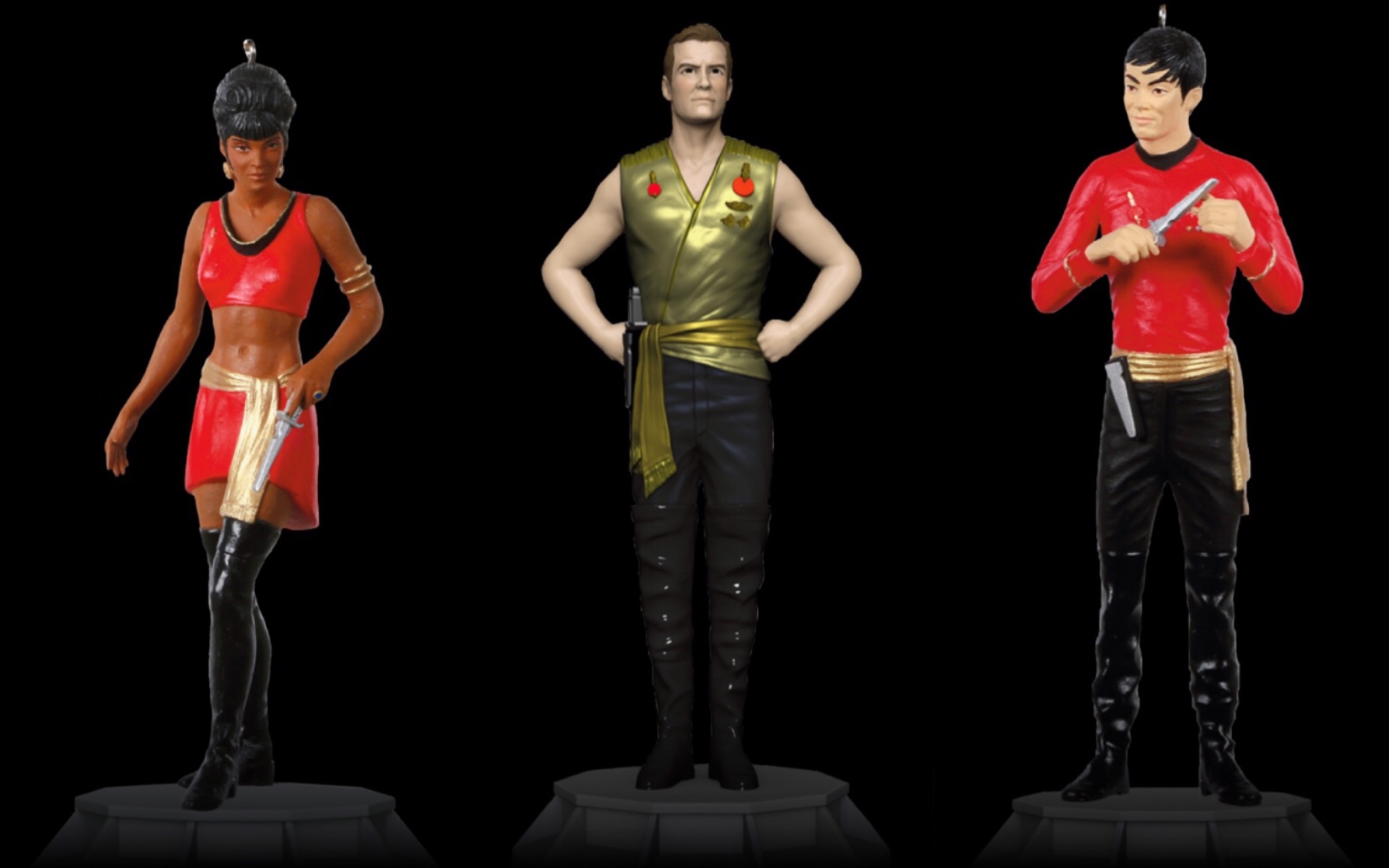 Promotional info: The Storyteller Enterprise Tree Topper ornament tells a different story depending on the combination of other ornaments in the series connected via a Keepsakes power cord.  These Storyteller ornaments will be based upon characters from the Star Trek episode “Mirror, Mirror”.  Look for Mirror Sulu, Mirror Kirk and Mirror Uhura in 2020 and more Storytellers coming in 2021 and 2022.