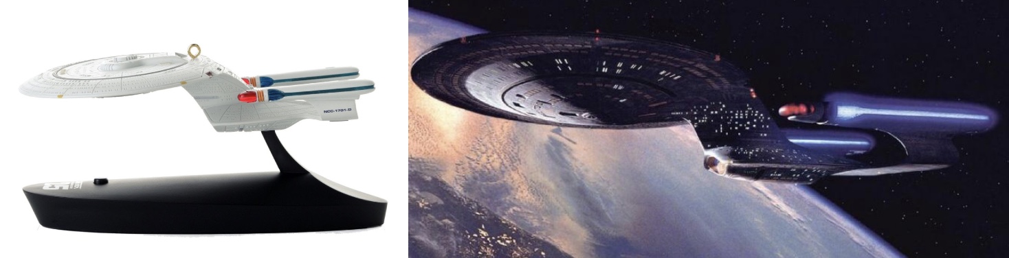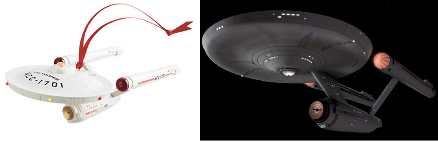 Lynn Norton: “I had this ship on my short list for years. The ornament has got a kick-ass lighting effect. I know there was some conversation among fans as to our releasing it with a pristine look rather than having some battle damage as depicted in the (TNG) episode “Yesterday’s Enterprise.” My vote was to make it pristine. While I’m thrilled that Star Trek fans like our products, we have to keep the Hallmark shopper in mind as our primary consumer. When you put something in the store that appears battle-damaged, to them, it looks dirty. They don’t know the backstory and in many cases they don’t care as they likely are buying these as a gift for someone who is a fan. That fan will appreciate the detail and pore over it, but at the point of purchase, the buyer needs to be attracted to it. In my mind, I like reserving the battle-damage look for reissues or as event exclusives.”