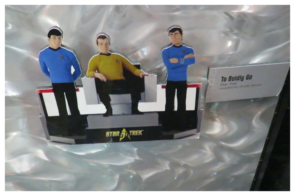 In light of this announcement it seems only fitting to revisit 2016’s Star Trek: Mission New York which took place during Star Trek’s 50th Anniversary. To celebrate the anniversary, Hallmark displayed all 81 Star Trek ornaments that had been released up to that time (actually 80, “To Boldly Go” was still just a cardboard image).