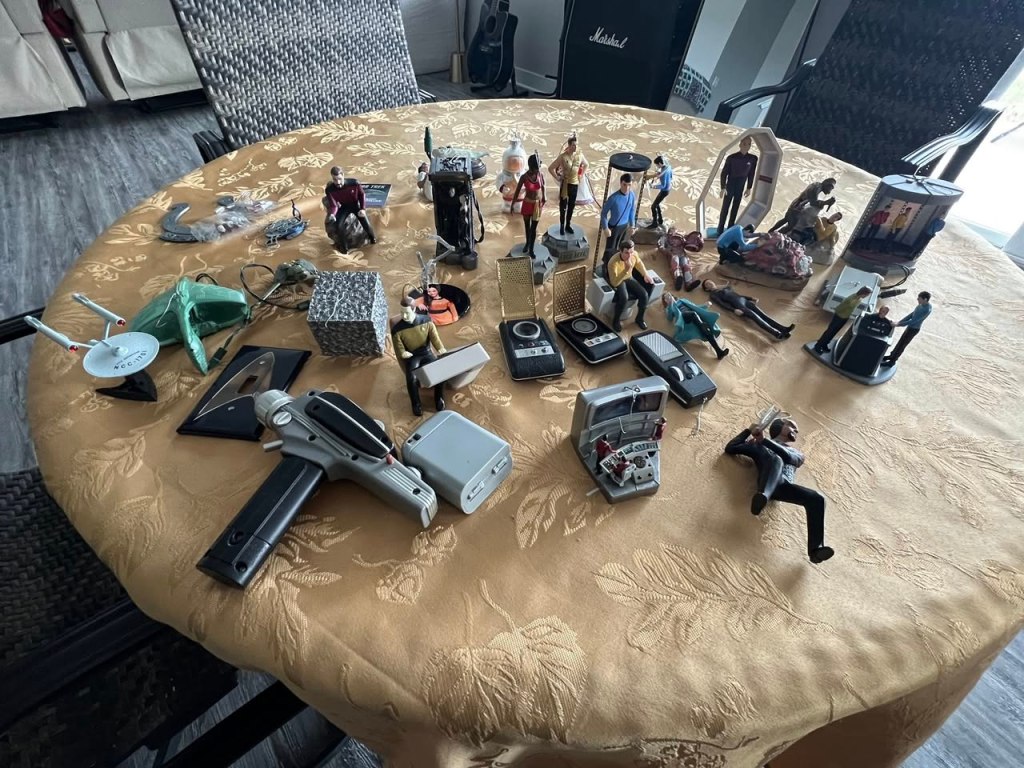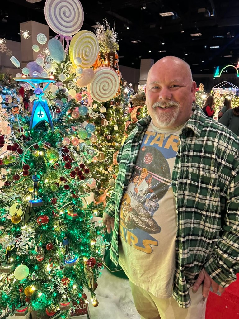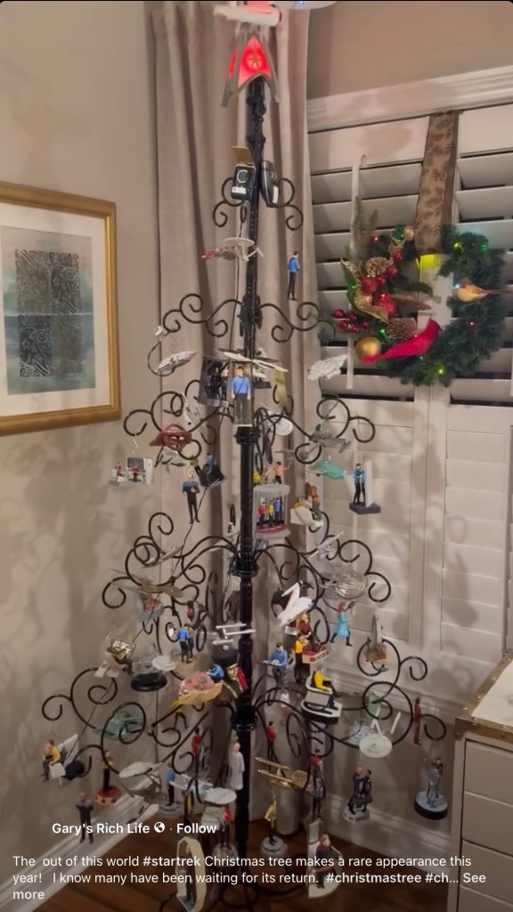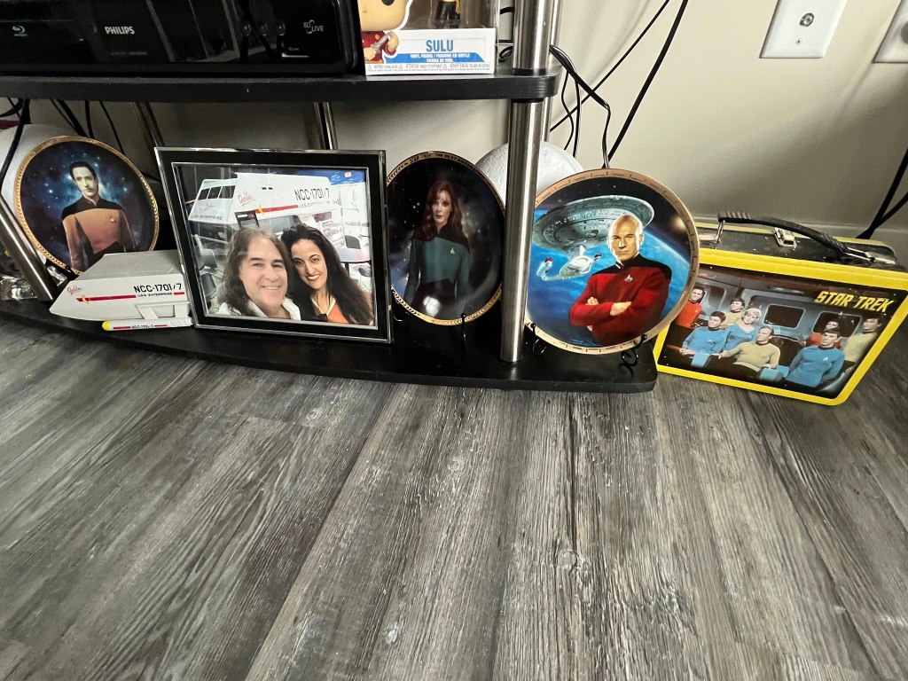 It’s that time of year! Putting together our Star Trek Christmas Tree today! Can you name some of the episodes from the scene depicted in the ornaments? And yes that’s me and Natalia with the real shuttle craft Galileo from the original Star Trek series! –Don Stuck on Facebook