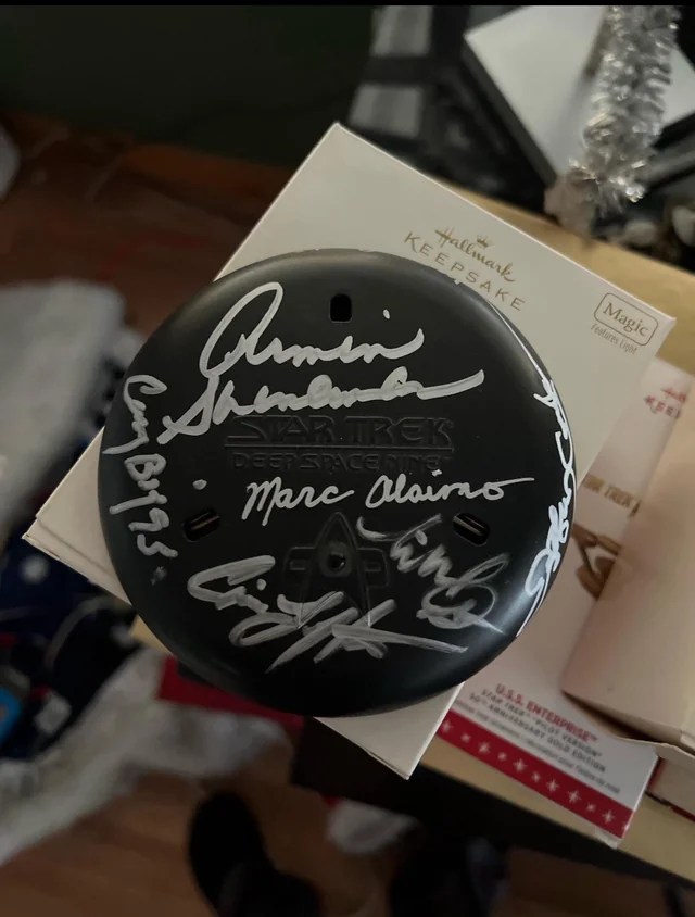 My Star Trek tree this year along with the Wreath of Khan. –Torquemada on RedditLet me show you my base. I have been to a few conventions. Max Grodenchiks autograph is on the top lip.