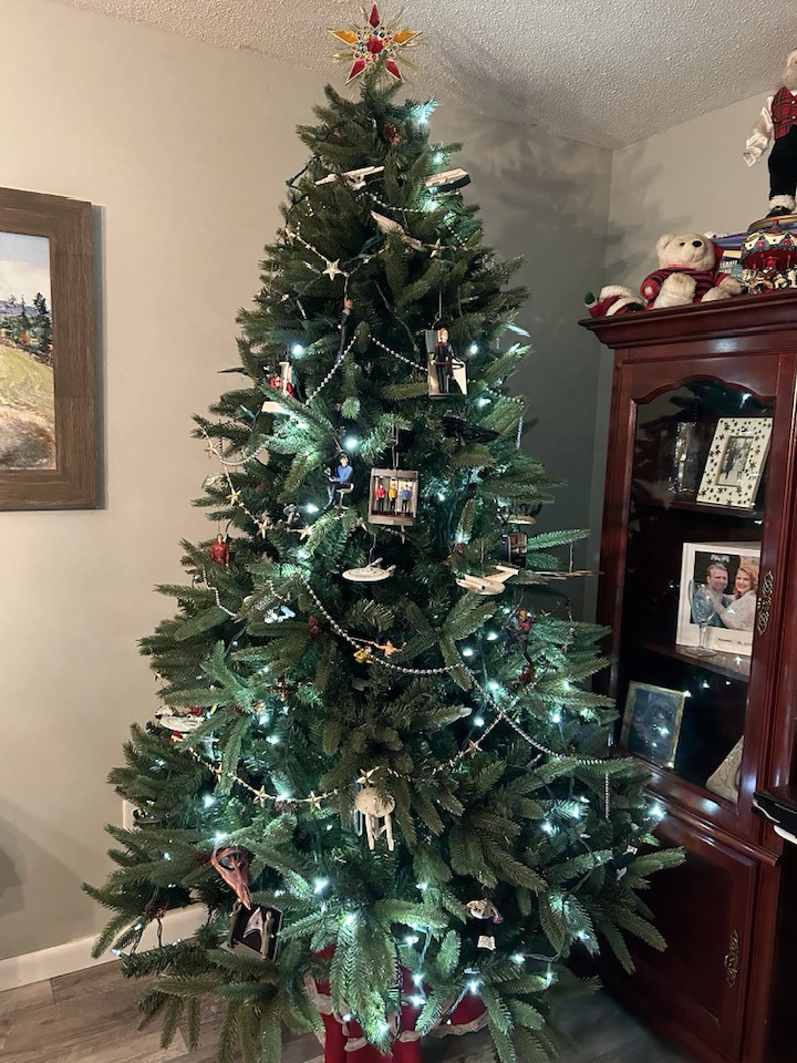 The first time in 3 years I have had the energy to put up my Star Trek tree! I started in 1991 collecting the annual ST ship put out by Hallmark and as we had expendable cash the collection grew. “Shuttlecraft to Enterprise, Spock here. Merry Christmas. Live long and prosper.” –Marci Jackson Ward on Facebook