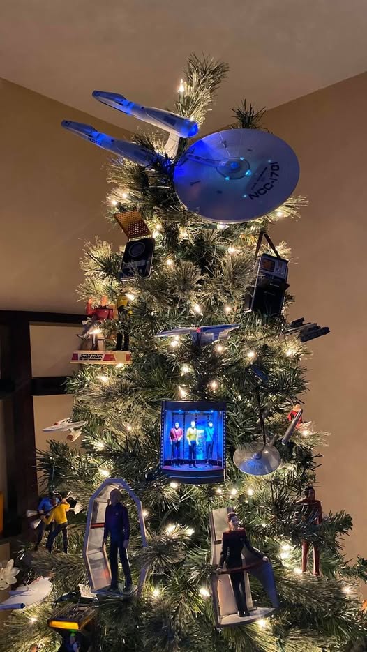 Tree 2025 has cleared spacedock is ready to fly. Joining the collection this year are: 1) Ensign Bradward Boimler from Lower Decks 2) Ensign Beckett Mariner from Lower Decks 3) Guinan from the Next Generation episode “Q Who” 4) The USS Titan from Star Trek Picard season 3 5) Hologram Janeway from Star Trek Prodigy –Tim Lade on Facebook
