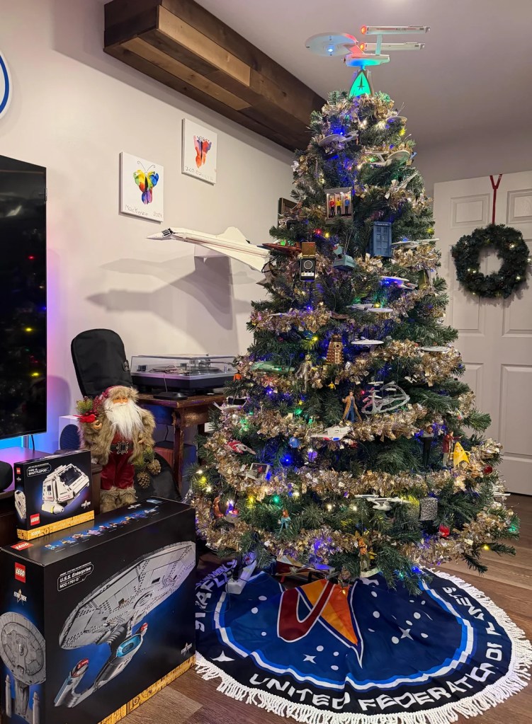 Christmas, the final frontier – The Star Trek tree got an upgrade. Still have some ornaments to add, but I do believe we have the best tree this side of the Delta Quadrant –Wendy Bernard-Kanehl on Facebook