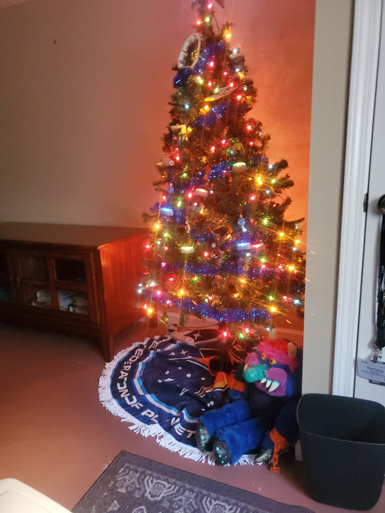 ”Best UNLICENSED tree topper? Okay, I’ll grant you that. Best Star Trek tree topper in EXISTENCE? You say that now — but wait until Isis the cat shows up to swat that ship out of its holiday orbit! Okay, all kidding aside, this is a magnificent display and a remarkable DIY tree topper. My hat is off to all involved. Thank you so much for including our work in your holiday celebrations. I’m sincerely flattered as are we all.”
