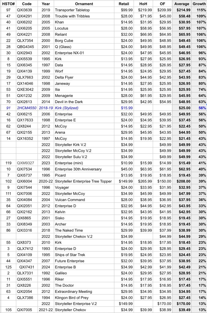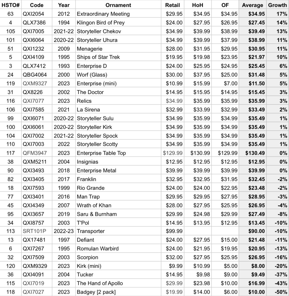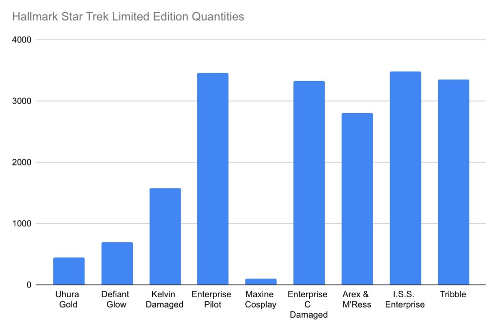 Secondary market values are based on the the average of the top three Star Trek Hallmark resell websites. All three on the list are convention limited editions.