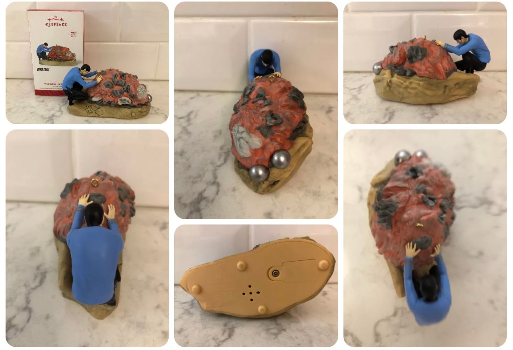 Mr. Spock was admired for his logic, but he was also empathic, and he used both traits to try to understand the many beings the staff of the U.S.S. Enterprise encountered in their intergalactic travels. This magic ornament commemorates the 1967 Star Trek episode, “The Devil in the Dark,” where Mr. Spock communicates with a Horta. Simply press the button on the ornament and you can hear dialogue from this scene.