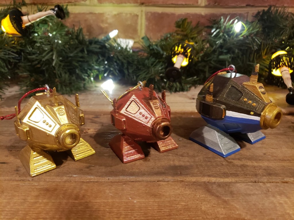 “Can I teach you a lesson?” If you hear that from Badgey, the malfunctioning tutor hologram onboard the “U.S.S. Cerritos,” prepare to learn about matters of life or death! This set of two Christmas tree ornaments shows the mascot of the Rutherford Training Beta 2.5 program in his nice as well as naughty personas as seen on “Star Trek: Lower Decks.”