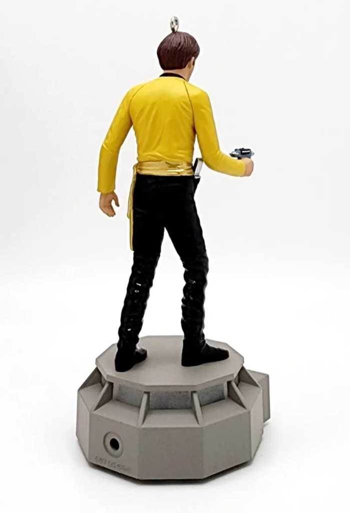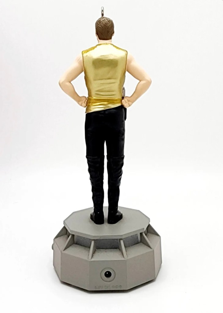 A commanding presence in any universe, Captain James T. Kirk shows his darker side as he takes charge of the I.S.S. Enterprise. There’s no better leader for your Star Trek Christmas tree ornament collection. Plug the ornament into Hallmark’s Keepsake Power Cord (sold separately) for constant illumination, then press the button to start a sound and light show based on the classic original Star Trek series episode “Mirror, Mirror.” Connect all of the Star Trek Storytellers ornaments—Captain James T. Kirk, Lieutenant Hikaru Sulu and Lieutenant Nyota Uhura—and the U.S.S. Enterprise Tree Topper (each sold separately) to unlock additional interactive performances.