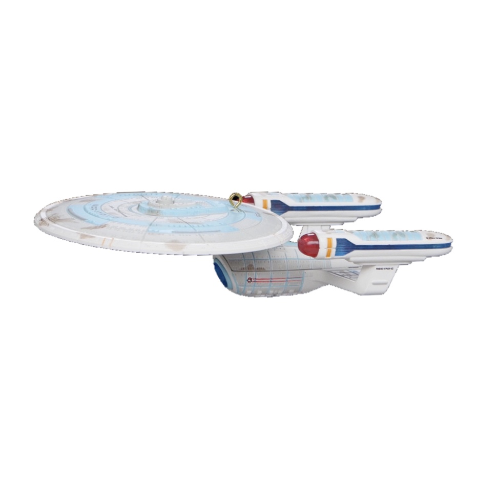 U.S.S. Enterprise NCC-1701-B (Nexus Damage), Star Trek Generations™ Keepsake Ornament – To celebrate the 30th anniversary of the Star Trek Generations feature film, this lighted event-exclusive Keepsake Ornament depicts damage sustained by the U.S.S. Enterprise-B while encountering the Nexus ribbon.—Only 3,200 Produced! $35.