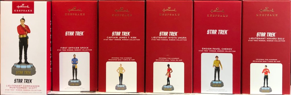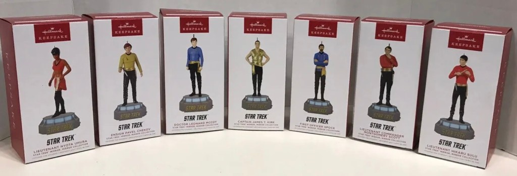 This is the complete list of Star Trek ornaments (and snow globe) available at Hallmark stores in 2022. Six of the Star Trek Storytellers ornaments have been available in the past two years but 2022 is the last year the Star Trek Storytellers series will be available in stores.