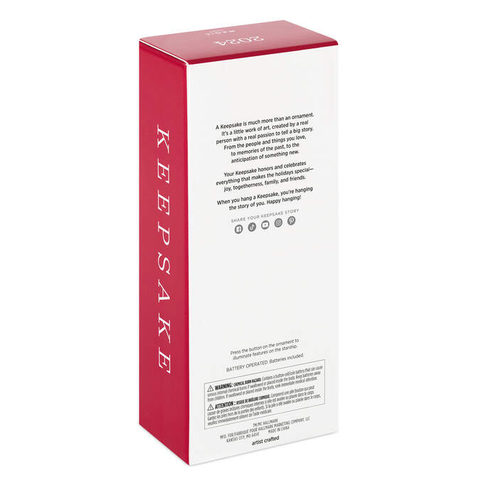 Includes: One 2024 Keepsake Ornament in gift box for easy gift giving, preservation and storage. Requires two (2) LR44 replaceable batteries (included).