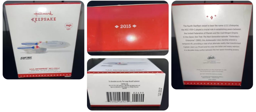 U.S.S. Enterprise™ NCC-1701-C, a Keepsake Ornament inspired by the Star Trek: The Next Generation episode “Yesterday’s Enterprise,” depicts the iconic starship with a battle-damage paint scheme as it appeared on screen. This repaint of a 2015 Keepsake Ornament has a total production run of 3,325 and sales will be limited to 225 per day.