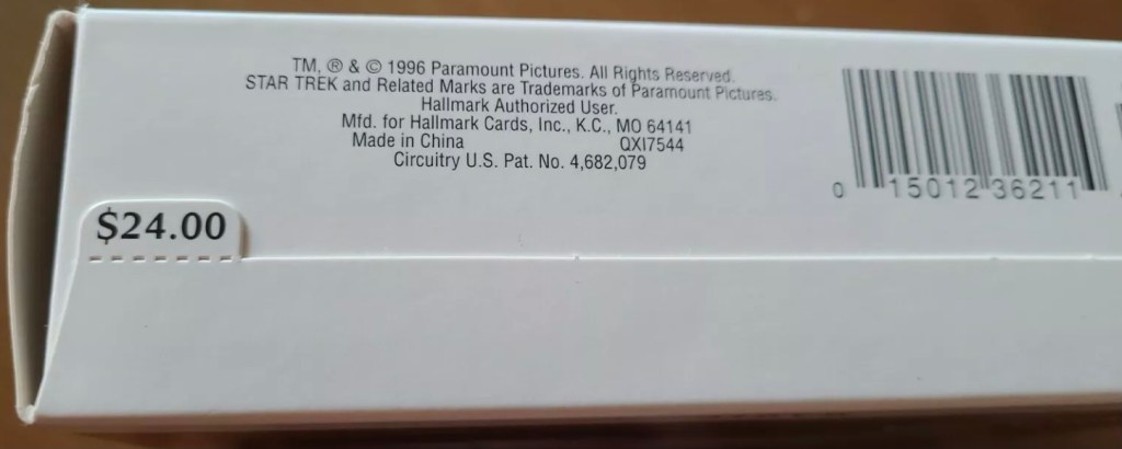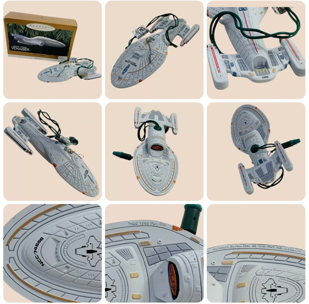 Fascinating! The crew of the U.S.S. Enterprise would hear this word spoken by their Vulcan science officer many times as he mans the science station abourd their starship, as shown by this 1996 Star Trek Hallmark Keepsake Ornament. Although Mr. Spock was half human and half Vulcan (his mother was Amanda Grayson, a human, and his father was Sarek, a Vulcan Diplomat), it was always clear that Spock’s mid was trained in the Vulcan way, but the crew could always see how he would struggle to incorporate his human thoughts and feelings. Mr. Spock served as the first officer of the U.S.S. Enterprise under two different captains (Christopher Pike and James T. Kirk), until he was promoted to Captain himself and given command of the Enterprise, only to relinquish command to Admiral Kirk in Star Trek II – The Wrath of Khan. Mr. Spock, as played by Leonard Nimoy, appeared in 7 feature films, including as an older version of himself in the 2009 Star Trek “reboot” film.